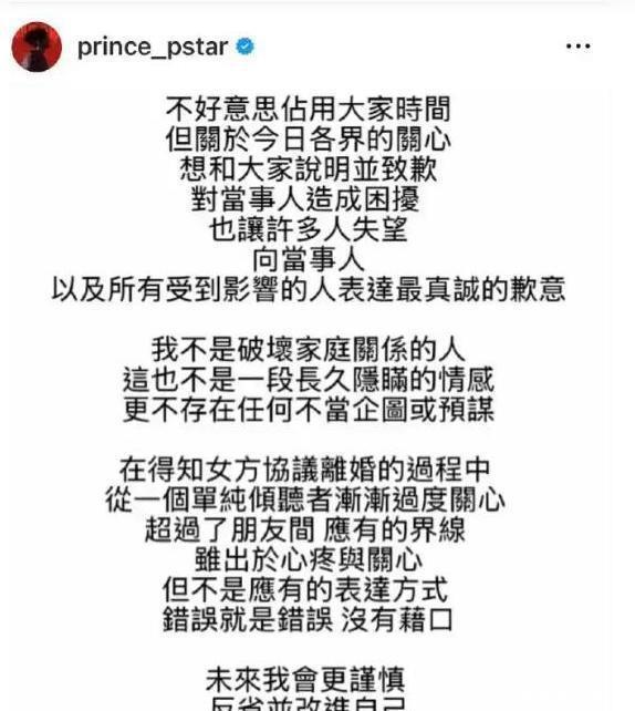 除了像这样夫妻之间互相扶持变强的关系之外,娱乐圈里那些复杂的感情关系还是层出不穷。一份道歉声明,让当年“棒棒堂男孩”王子邱胜翊陷入了舆论的风暴,也揭开了娱乐圈情感纷争的各种复杂局面。